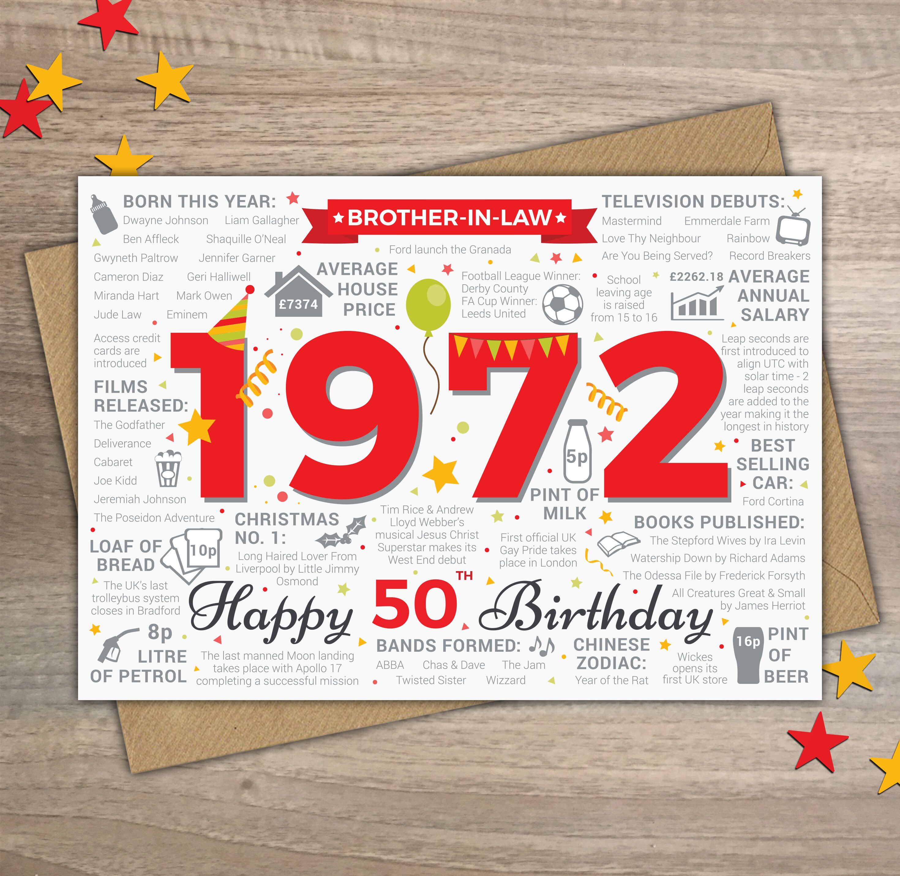 Source: www.etsy.com 50Th Brother-In-Law Happy Birthday Greetings Card Born In - Etsy Hong Kong