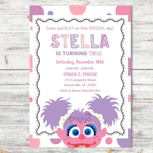 Source: www.luvibeekidsco.com Sesame Street Abby Cadabby Birthday Invitation | Purple & Pink – Luvibeekidsco