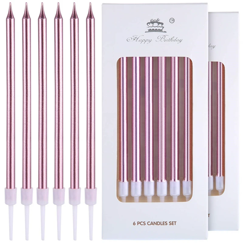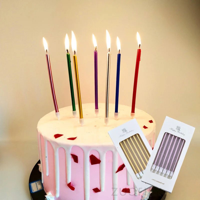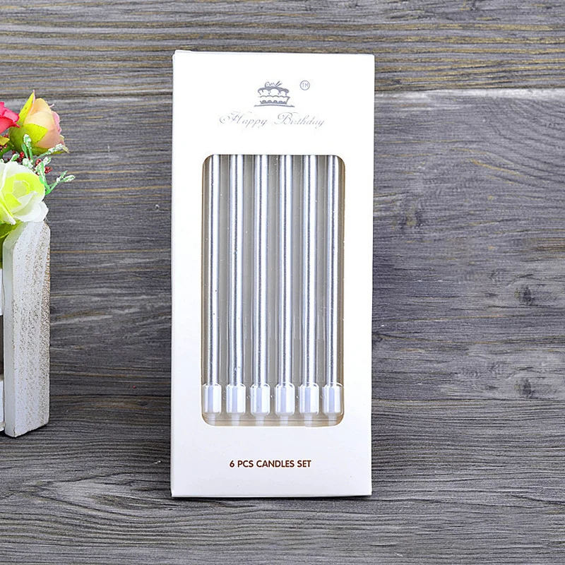 Source: www.aliexpress.com 6 Pcs Long Thin Cake Candles Metallic Birthday Candles Long Thin Candles In Holders For Birthday Wedding Party Cake Decorations - Candles - Aliexpress