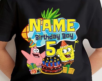 Source: hobbycustom.com Spongebob Squarepants Personalized Name Age Custom Birthday T-Shirts - Hobbycustom