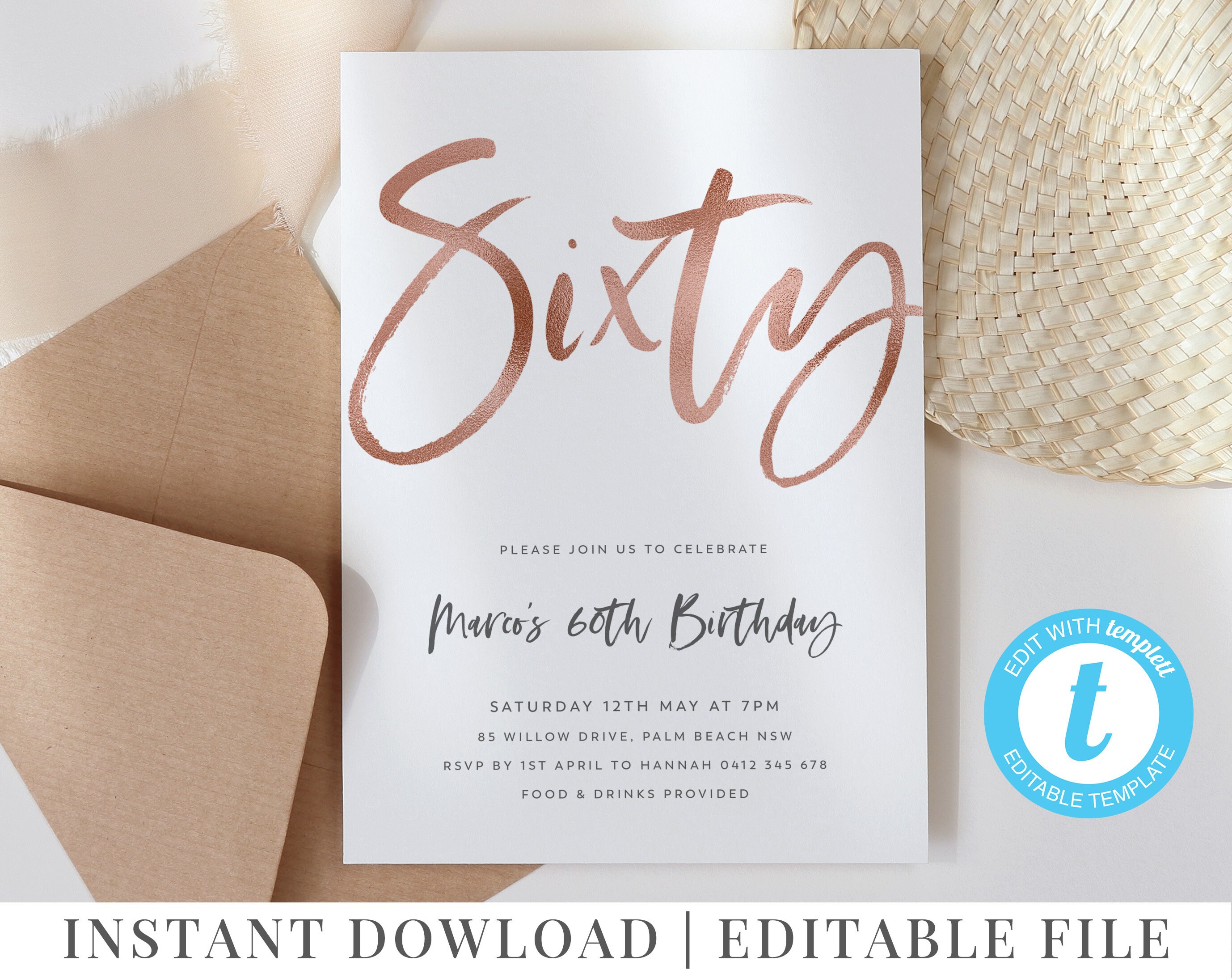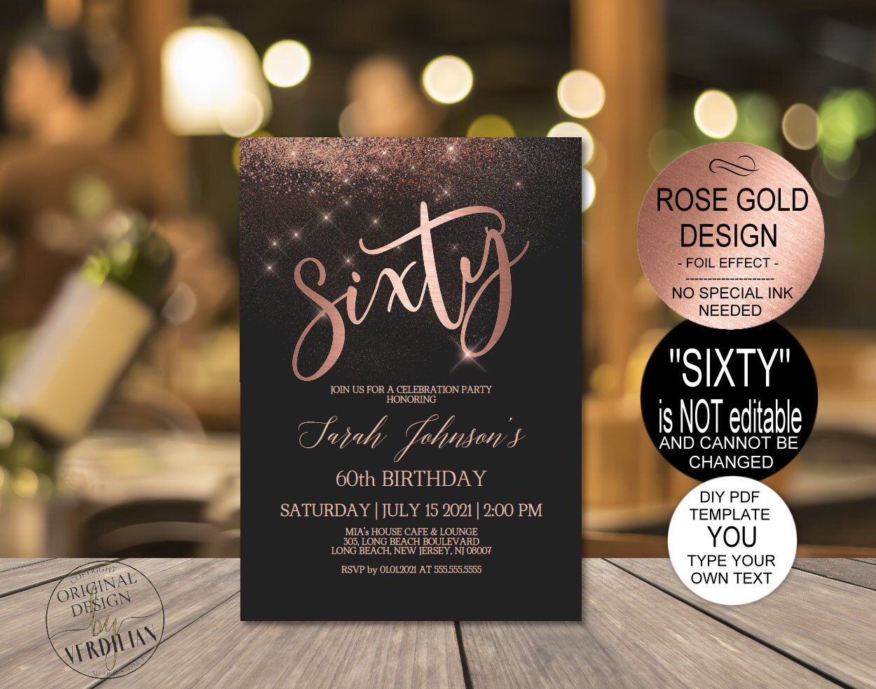 Source: www.etsy.com Diy 60Th Birthday Invitation Template Rose Gold Birthday - Etsy