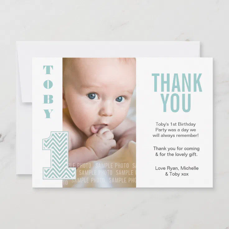 Source: www.zazzle.com Baby Boy Chevron 1St Birthday Thank You Photo Card | Zazzle